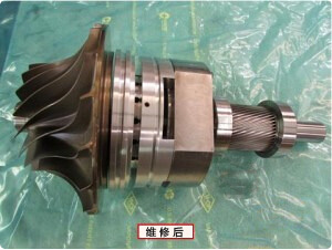 修复腐蚀/摩擦轴承轴颈,密封轴颈和叶轮轴头。内容包括全尺寸和无损探伤检验,研磨/电镀/研磨或高速火焰喷涂,精加工和平衡。