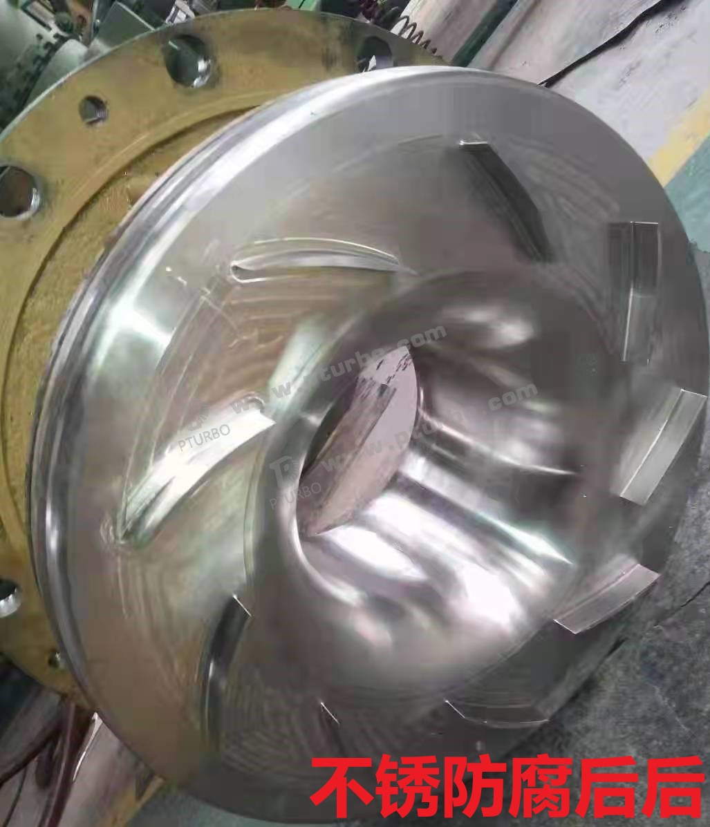 修复完整的转子,内容包括:拆卸,清洗,尺寸检查,无损检测,侵蚀破坏融合,根据需要提供可更换叶轮/转子,重新组装,平衡,长期存储和装箱。